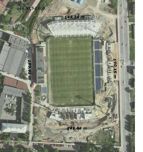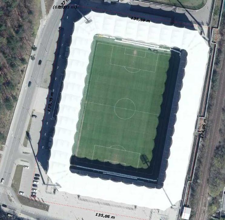 22Wklejam wymiary stadionu Arki Gdynia, budowanego BKS Bielsko i terenu Odry Opole. Może jakiś magik projektant dał by radę sprostać temu zadaniu. Niestety nie można zmierzyć stadionu GKS Tychy, ponieważ mapy nie są zaktualizowane.
